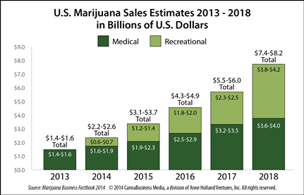Marijuana s the world’s most commonly cultivated, trafficked, and used illicit drug, and as the push for legalization at home and abroad grows, marijuana is garnering significant attention from investors, manufacturers, and researchers. Despite the plant being illegal under federal law as a Schedule I drug, the U.S. legal marijuana industry was estimated at $10.4 billion in 2018 with 250,000 jobs devoted to the handling of plants, according to New Frontier Data. A total of 33 states have legalized marijuana for medical use, 10 of which allow adults to legally use the drug for recreational use. And that number may continue to rise, as more people are accepting the idea of legalizing marijuana across the United States. This article looks at some of the uses of marijuana as well as the overall market for the drug.